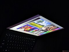 W porównaniu do panelu OLED, tańszy panel IPS może być nieco jaśniejszy w centrum, ale poza tym nieco ciemniejszy wokół krawędzi i narożników ze względu na gorszą jednorodność. Współczynnik kontrastu jest nadal bardzo dobry, szczególnie jak na panel IPS i wynosi ponad 2000:1, a podczas gdy Windows VRR jest obsługiwany do zaledwie 1 Hz na biegu jałowym, w przeciwieństwie do 20 Hz lub więcej w większości innych laptopów. Proszę zauważyć, że funkcja ta jest domyślnie wyłączona i należy ją włączyć ręcznie.