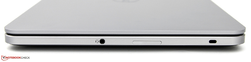 XPS L41x jest dość duży, więc pomieścił więcej złączy, niż przeciętny ultrabook. Posiada dwa USB 3.0, mini DisplayPort, HDMI i gniazdo LAN. Złącza te znajdują się w tylnej części lewej ścianki; tam też trafiło gniazdo zasilania. Na prawej ściance umieszczono zaś gniazdo audio, gniazdo blokady Kensingtona oraz czytnik kart pamięci. Ten ostatni jest słabo widoczny ze względu na to, że kolor jego zaślepki jest koloru obudowy. Autorowi nie spodobało się to, że ta zaślepka jest trochę nierówno wpasowana i że trudno ją wyciągnąć (trzeba użyć do tego paznokcia).