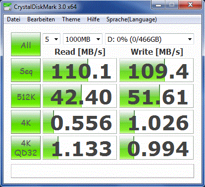 Dell wyposażył testowany egzemplarz w dwa szybkie (7200 obr/min) dyski Seagate o pojemności 500 GB (ST9500420AS). Pokazały się one z bardzo dobrej strony w teście HD Tune, uzyskując średnio przy odczycie 77,1 MB/s (HDD1) i 85,4 MB/s (HDD2). Dobre wyniki odnotowano również w testach CrystalDiskMark – 86,75/82,79 MB/s (odczyt/zapis) dla pierwszego i 110,1/109,4 MB/s (odczyt zapis) dla drugiego.