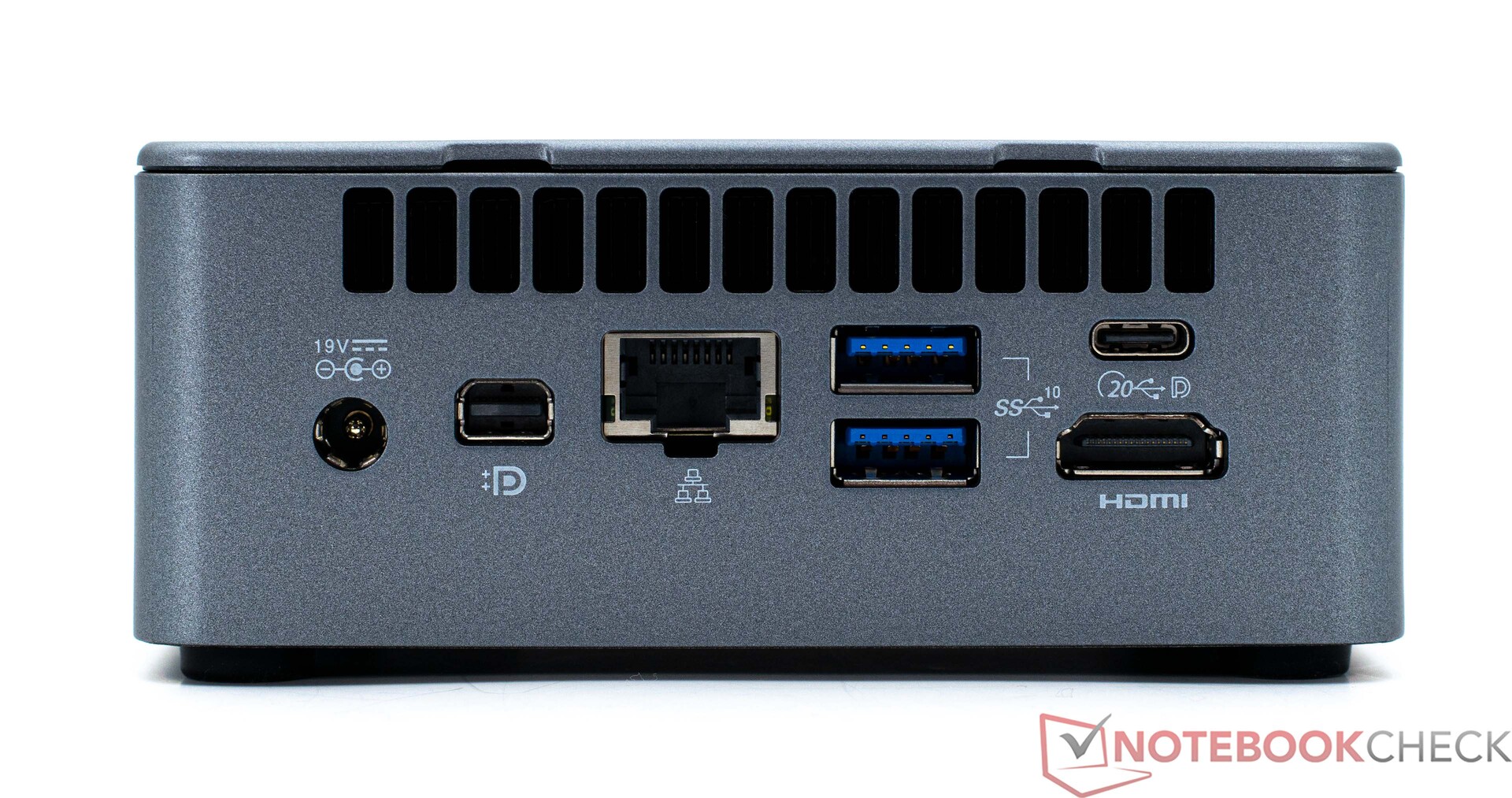 Jak już wiadomo, Geekom Mini IT11 jest bardzo podobny do swojego odpowiednika Intel NUC. Wszystkie jego wymiary - wysokość, szerokość i głębokość - są identyczne. Ma ładną i niewielką powierzchnię 11,7 x 11,2 centymetra, której nie może przebić żaden z testowanych przez nas konkurentów. W przeciwieństwie do Intela, Geekom oferuje Mini IT11 tylko w wersji wysokiej, co oznacza, że zawsze można zainstalować 2,5-calowe urządzenie pamięci masowej.