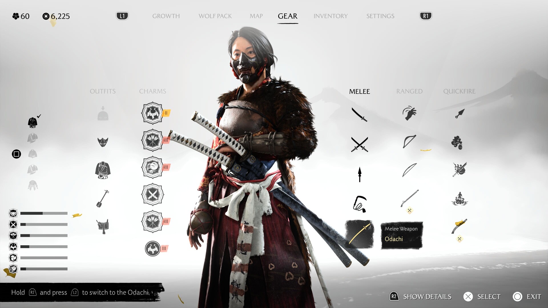Jedną z najbardziej zauważalnych zmian w Ghost of Yotei jest różnorodność broni, bardzo potrzebny krok naprzód w stosunku do walki opartej na postawie Tsushimy. Balansowanie wieloma rodzajami broni może być trudne, ale nic w grze nie wydaje się przesadnie mocne. Przełączanie broni jest płynne i jest niezbędną mechaniką, ponieważ wrogowie często noszą cały arsenał, a niektóre bronie są trudnymi kontrami dla innych, na przykład posiadacze Yari są kontrowani przez podwójne katany, brutale przez Odachi i tak dalej. Sama walka jest dość wymagająca, nawet na zwykłym poziomie trudności. Wielu wrogów roi się od przeciwników, a śledzenie każdego z nich staje się zniechęcające. Domyślnie możliwość namierzania poszczególnych wrogów jest wyłączona i zdecydowanie polecam włączenie jej w ustawieniach. Wiele aspektów trudności, takich jak zadawane obrażenia, szybkość wykrywania wroga i agresja wroga, można dostosować w zależności od elementu. Proszę pomyśleć o tym jako o rozwodnionej wersji tego, co oferuje Doom: The Dark Ages oferuje. Parowanie jest łatwe do opanowania przy odrobinie praktyki. Aby wyczucie czasu wryło się w pamięć mięśniową, proszę grać w zbroi Bounty Hunter, która całkowicie wyłącza zwykłe odbicia, ale rozluźnia czas parowania. Walka dystansowa dostaje powiew świeżości wraz z włączeniem miotanych bomb i pistoletu, z jakiegoś powodu. Mnie osobiście nie przypadło to do gustu, ale Państwa zdanie może się różnić. Jedno z zadań pobocznych daje ci urok, który pozwala automatycznie strzelać w głowę wrogów bez żadnego wysiłku, aby uzyskać klip godny 360-no-scope.