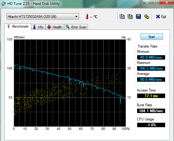 Nie zapominajmy, że wraz z platformą Huron River pojawiła się szerzej obsługa pamięci 1333 oraz teoretycznie kontroler SATA 3. Wbudowany dysk Hitachi 320 GB jest całkiem żwawy, jednakże wystarczy mu praca w starszej wersji interfejsu - SATA II.