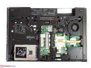 Spodnią osłonę obudowy można łatwo zdjąć, gdyż nie trzyma się ona na śrubkach. Po jej zdjęciu użytkownik uzyskuje dostęp do wszystkich ważnych podzespołów. Gniazdo karty SIM znajduje się we wnęce akumulatora. Testowany egzemplarz miał dwa gniazda pamięci, w tym jedno wolne. Istnieje możliwość łatwego wyczyszczenia wentylatora.
