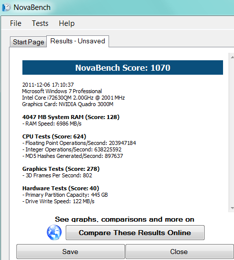 Notując 14054 pkt. w 3DMarku06, karta Quadro 3000M zalicza się do najwydajniejszych układów mobilnych, wyprzedzając m.in. Quadro FX 3800M z EliteBooka 8740w. Widać to też w benchmarku SPECviewperf. Wyniki mogłaby poprawić aktualizacja sterowników. Jednak w pracy od wydajności bardziej liczy się czasem np. lepsza współpraca ze starszym oprogramowaniem.