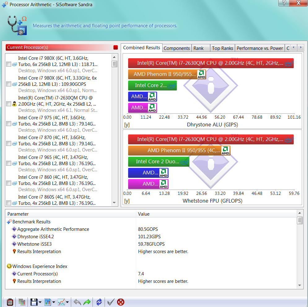 Core i7-2630QM to bardzo wydajna jednostka centralna. Potwierdza to chociażby uzyskanie 4,86 pkt. w teście Cinebench R11.5 (wersja 64-bitowa). Bazowe taktowanie wynosi 2 GHz, a maksymalnie w trybie turbo osiąga 2,9 GHz. Hyper-Threading umożliwia jednoczesne prowadzenie obliczeń na ośmiu wątkach, a pamięć podręczna L3 ma pojemność 6 MB. Z dostępnych technologii procesorowi brakuje właściwie tylko TET i wirtualizacji VT-d. To właśnie dlatego nie uzyskał on certyfikatu vPro.