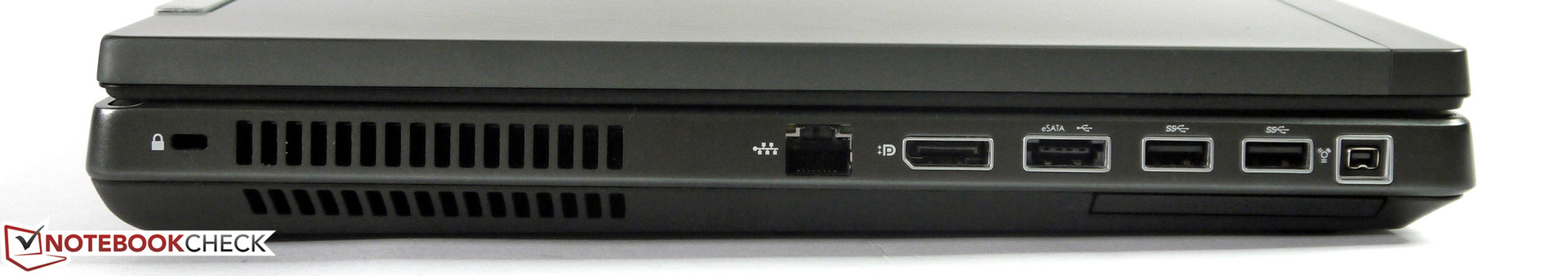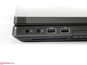 Rozmieszczenie złączy nie jest optymalne. Ważne porty (LAN, DisplayPort, eSATA, dwa USB 3.0 i FireWire) są ulokowane w przedniej części lewej ścianki bocznej, i to w niewielkich odstępach. Podłączane do nich urządzenia i kable mogą przeszkadzać w używaniu z tej strony laptopa myszki komputerowej. Na prawej ściance zlokalizowane blisko przodu są natomiast dwa USB 2.0 i dwa gniazda audio.