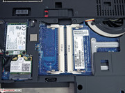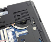 Na spodzie jednostki zasadniczej metal zestawiono z plastikiem. Akumulator znajduje się z tyłu i jest blokowany przez mechanizm ryglujący z suwakiem. Drugi suwak zwalnia spodnią osłonę, pod którą znajduje się większość podzespołów. Do jej zdjęcia nie potrzeba więc śrubokrętu. Wentylator jest co prawda częściowo zakryty, ale i tak da się go wyczyścić. W testowanym egzemplarzu dwa gniazda pamięci na spodzie były wolne; zajęte były natomiast dwa gniazda ulokowane pod klawiaturą. Jeżeli chodzi o miejsce na dyski, w 8770w są dwie zatoki dysków oraz kieszeń modułowa (Upgrade Bay). W testowanym egzemplarzu jedna z dwóch zatok była wolna, ale nie było w niej ramki na dysk.