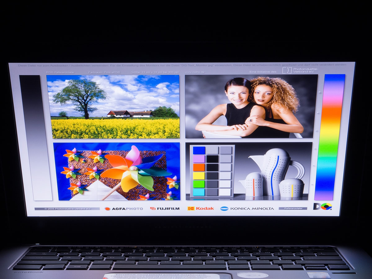 Ekran omawianego laptopa nie za bardzo nadaje się do zastosowań graficznych, choćby ze względu na niewielkie pokrycie przestrzeni barw sRGB, ale do użytku biznesowego jest w sam raz. To za sprawą dość szerokich kątów widzenia, które umożliwiają przeprowadzenie prezentacji dla szerszego grona osób.