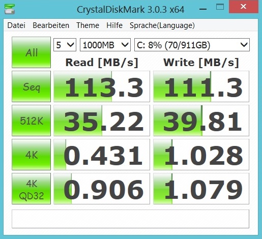 Nośnikiem pamięci masowej był w Envy 15 dysk twardy Travelstar 5K1000 o pojemności 1000 GB i prędkości 5400 obr/min. CrystalDiskMark wykazał ponad 110 MB/s w odczycie i zapisie sekwencyjnym. To wyniki na poziomie dysków o prędkości 7200 obr/min. Średni odczyt w HD Tune miał wartość 84,4 MB/s, a czas dostępu osiągnął 18,1 ms. To również niezłe rezultaty.