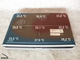 Przechodząc do emisji ciepła, wydobywające się z tyły powietrze nie jest zbyt gorące, tym samym cały laptop pozostaje wyjątkowo chłodny (najwyżej 35°C na spodniej części). Nowsze wersje BIOS mają pozwolić na wyłączenie wentylatora, a tym samym zwiększyć znaczenie zarządzania emisją ciepła.
