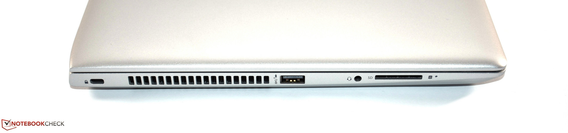 Wyposażenie w złącza zewnętrzne jest prawie takie samo, jak w ProBooku 450 G5. Jedyna różnica to to, że ProBook 440 G5 ma o jeden port USB typu A mniej. Łącznie omawiany laptop posiada trzy porty USB (w tym jeden port USB C wspierający DisplayPort Alternate Mode). ProBook 440 G5 ma trzy wyjścia sygnału wideo (DisplayPort przez USB C, HDMI i VGA).
