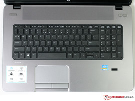 Wystarczy spojrzeć na klawiaturę ProBooka 470, by stwierdzić, że mamy tu do czynienia z pokrewieństwem z mniejszym modelem ProBook 450. Płytki są czarne i rozstawione w dużych odstępach od siebie. Klawisze alfanumeryczne mierzą 15 x 15 mm. Klawiatura jest sztywna. Klawisze chodzą może nieco zbyt lekko, ale ich odpowiedź jest precyzyjna. Po przyzwyczajeniu da się pisać dość szybko. Szkoda tylko, że klawiatura nie jest podświetlana.