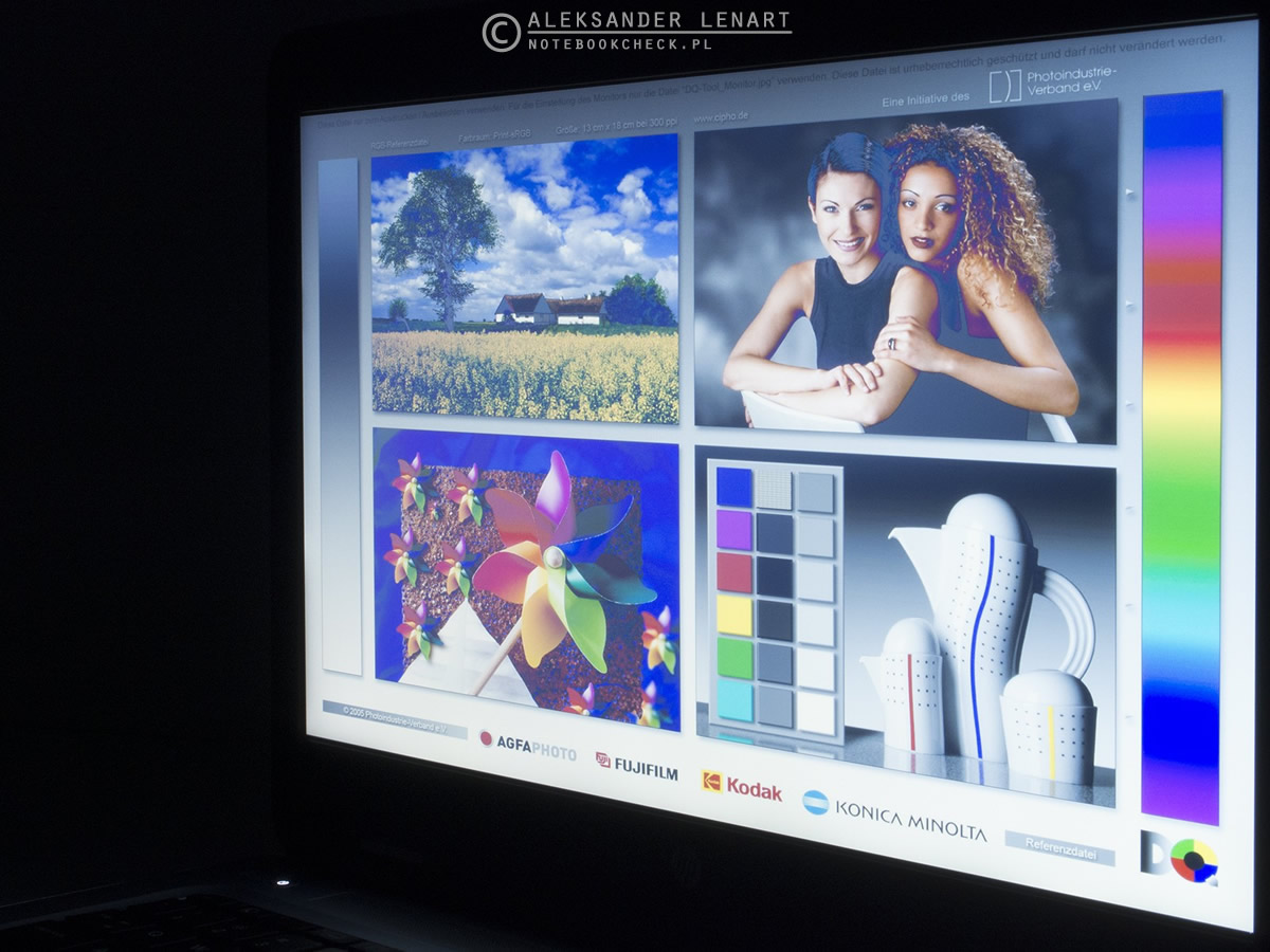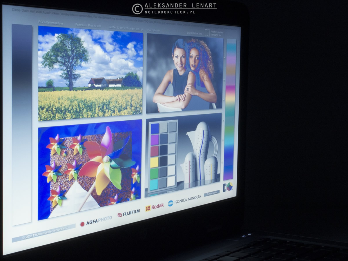 Pozytywnie natomiast zaprezentowała się paleta barw. Jest ona w dużej mierze zgodna z przestrzenią kolorów sRGB, choć jest od niej nieco węższa. W recenzji EliteBooka 840 G3 narzekałem na brak równomiernego podświetlenia, W ProBooku 640 G2 nie było tego problemu. Niestety kąty widzenia są mocno ograniczone (czyli bez niespodzianki w przypadku matrycy TN).