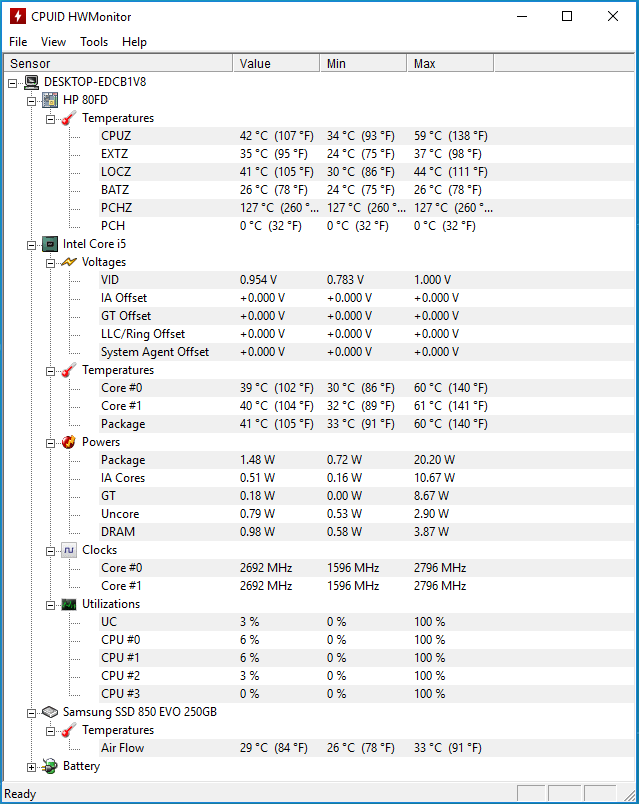 Nasz egzemplarz ProBooka 640 G2 wyposażono w procesor Core i5-6200U, 16 GB pamięci RAM (w dwóch modułach po 8 GB pracujących w trybie dwukanałowym) oraz dysk SSD o pojemności 250 GB.