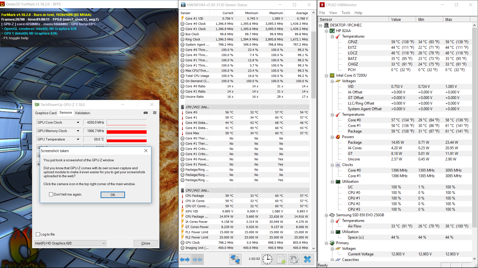 W trakcie testu wytrzymałości HP ProBook 650 G3 wykazywał znaczącą tendencje do zaniżania taktowania CPU. Zaraz po starcie testu częstotliwość taktowania rdzeni obniżała się do poziomu 1,4 GHz i utrzymywała na takiej wysokości przez cały czas trwania sprawdzianu. Z kolei przy maksymalnym obciążeniu procesora (przy życiu aplikacji Prime95) rdzenie CPU były taktowane z częstotliwością 2,6 GHz (a więc o 100 MHz wyższą od taktowania bazowego).
