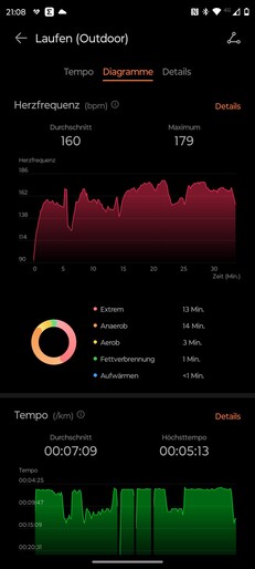 Huawei Band 8 może automatycznie wykrywać chodzenie i bieganie oraz rozpoczynać nagrywanie. Zadziałało to niezawodnie w naszym teście, a urządzenie rozpoznało również przerwy podczas joggingu. Szkoda, że opaska nie może śledzić jazdy na rowerze na świeżym powietrzu. Ze względu na brak zintegrowanego połączenia satelitarnego, niektóre dane treningowe, takie jak prędkość, są dostępne tylko wtedy, gdy obecny jest sparowany smartfon.