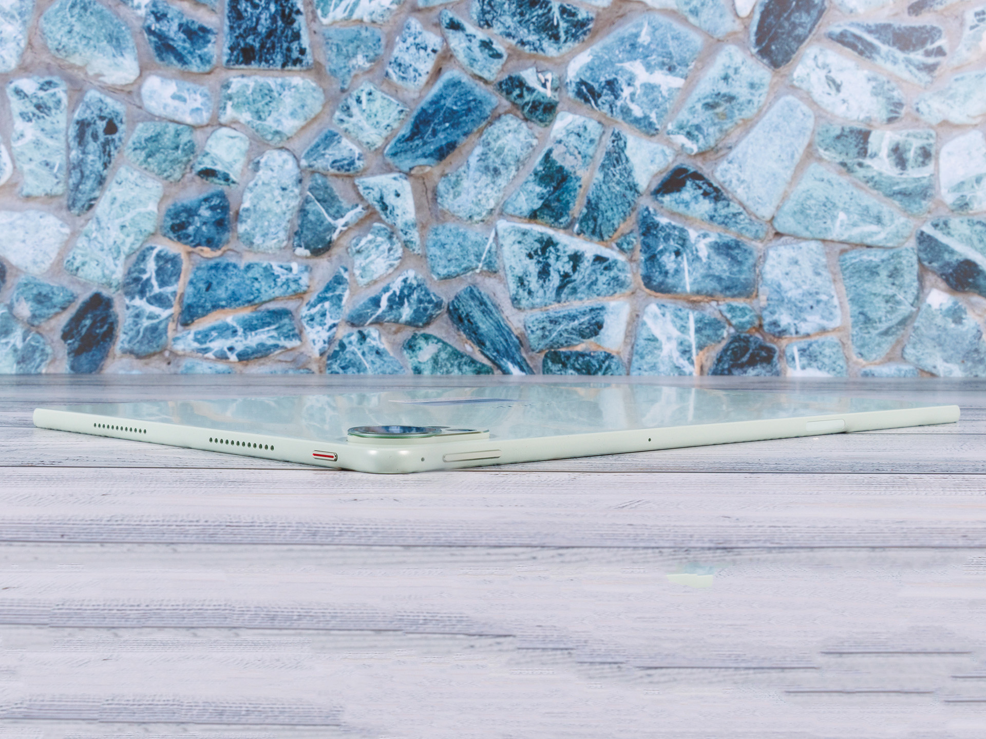 Huawei MatePad 12 X (2025) jest dostępny w kolorze zielonym i białym i charakteryzuje się solidnym stosunkiem wyświetlacza do obudowy wynoszącym 86%. Przy grubości 5,9 mm jest smukły i ma wysokiej jakości wygląd dzięki aluminiowej obudowie.