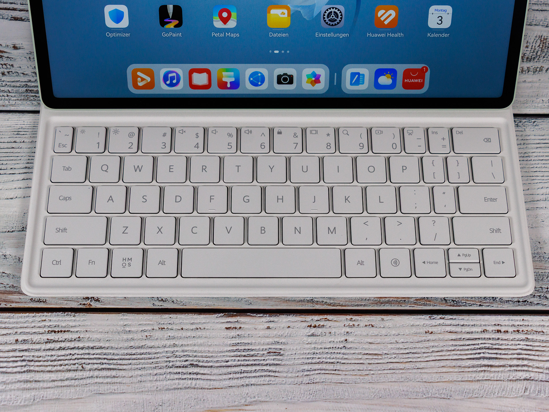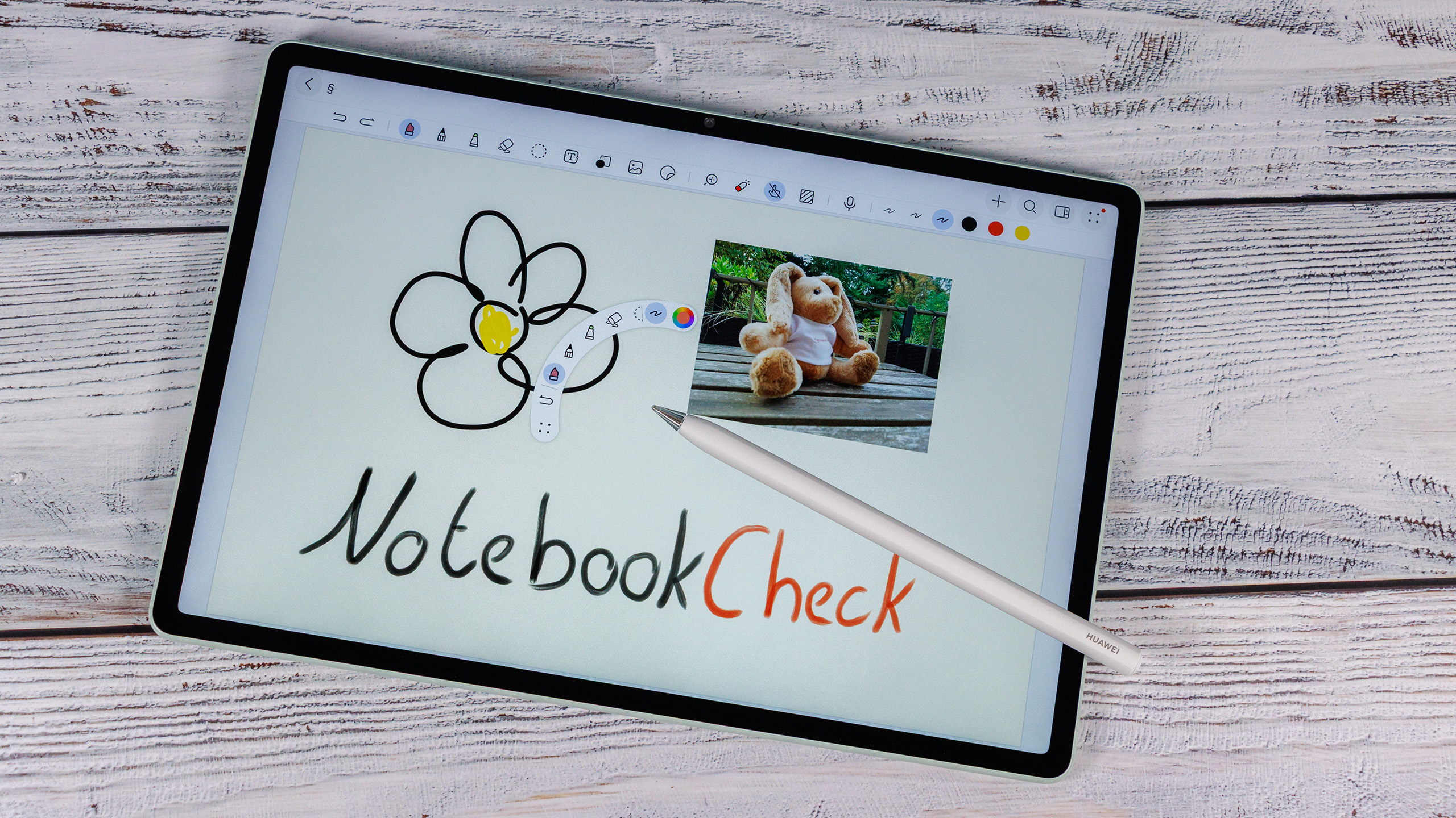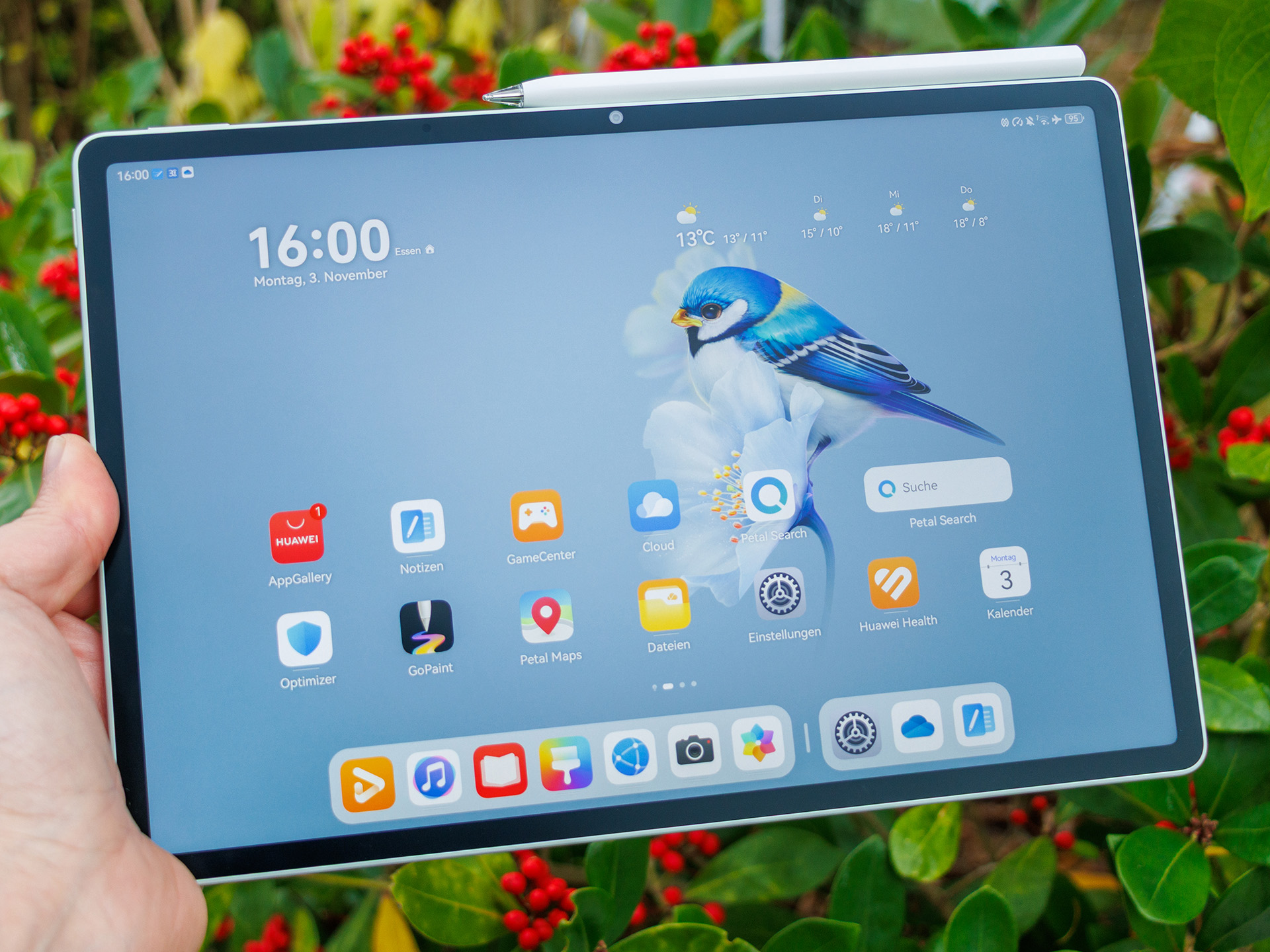 Pojemnościowy ekran dotykowy działa bez zarzutu i po raz pierwszy obsługuje również aktywny rysik Huawei M-Pencil Pro. Rysik łączy się z tabletem za pośrednictwem NearLink, zapewniając niskie opóźnienia. Dzięki ponad 10 000 poziomom nacisku jest on bardzo czuły, a trzy różne końcówki pióra (precyzyjne pisanie, precyzyjne, rysowanie) wraz z haptycznym sprzężeniem zwrotnym uzupełniają sześciokątną konstrukcję pióra. W połączeniu z matową powierzchnią PaperMatte zapewnia to naturalne wrażenia podczas pisania.