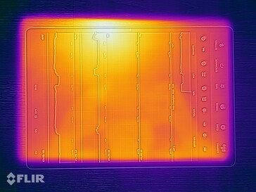 (±) Maksymalna temperatura w górnej części wynosi 43.4 °C / 110 F, w porównaniu do średniej 33.7 °C / 93 F , począwszy od 20.7 do 53.2 °C dla klasy Tablet.