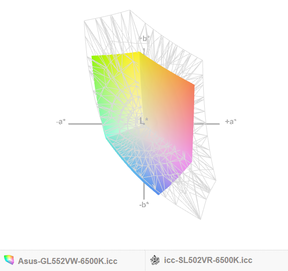 W testowanym Hyperbooku SL502 VR zamontowano matrycę LG LP156WF6 (LGD046F). Monitor ten ma przekątną 15,6 cala a jego domyślną rozdzielczością jest Full HD (czyli 1920 x 1080 pikseli). Powłoka wyświetlacza jest antyodblaskowa, co zwiększa komfort pracy nawet przy nadmiernym oświetleniu zewnętrznym. Opisywany model należy pochwalić za dość dobrą głębię czerni (0,4 cd/m²), niezłą luminancję (średnio 360,5 cd/m² przy maksymalnej intensywności podświetlenia) oraz kontrast (909:1).