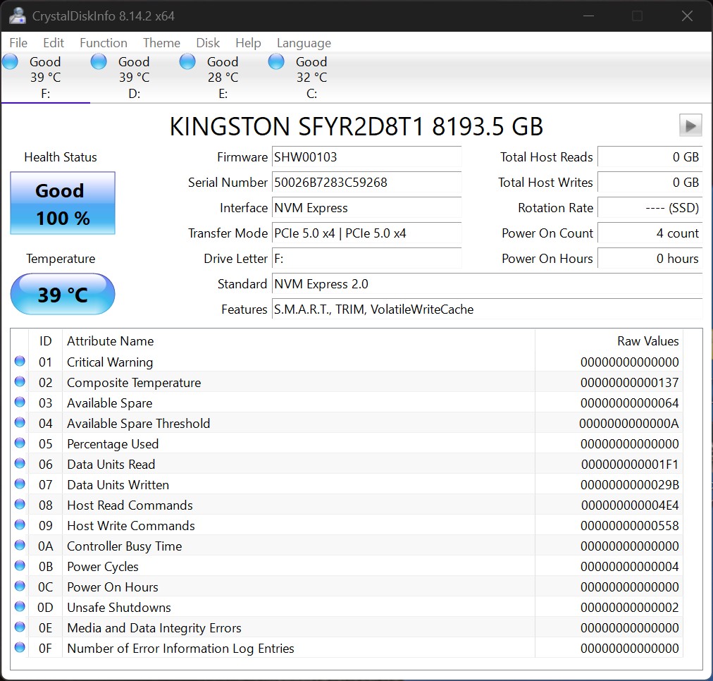 | Interfejs | PCIe 5.0 x4 |