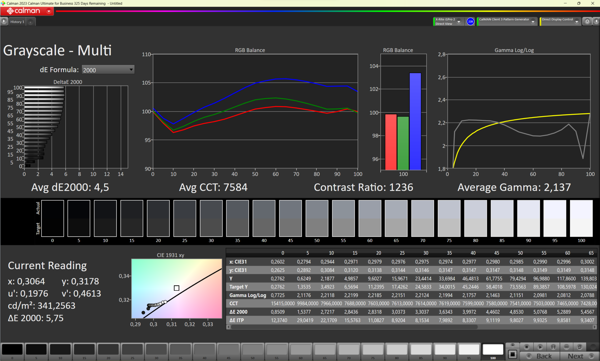 ΔE Greyscale Calman: 5.75 | ∀{0.09-98 Ø5}