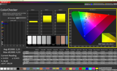 Po wyjęciu z pudełka, LG Gram 2-w-1 ma zauważalny niebieski odcień i przeciętnie skalibrowany wyświetlacz. Nasz profil ICC znacznie zmniejsza odchylenia kolorów i eliminuje lekki niebieski odcień wyświetlacza. Przy średnim ΔΕ wynoszącym 1,15 po kalibracji, kinomani mogą cieszyć się filmami w prawie całkowicie pokrytej przestrzeni kolorów DisplayP3.