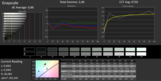 Nie najlepiej przedstawia się odwzorowanie kolorów. W stanie fabrycznym średni błąd dE2000 dla kolorów wynosił 7,21, czyli był dość duży. Dla szarości wynosił on 6,86. Przy ustawionej średniej jasności kolory były trochę przesunięte w stronę brudnej zieleni. Paleta kolorów okazała się mocno ograniczona. Zawiera się w niej tylko 37% przestrzeni kolorów Adobe RGB i 58% przestrzeni sRGB.