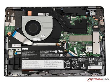Lenovo stosuje tylko akumulator o pojemności 52,5 Wh, ale nasze testy pokazują, że czas pracy na baterii jest bardzo dobry, zwłaszcza przy jasności adaptacyjnej 150 cd/m² (stanowiącej 80% maksymalnej jasności urządzenia recenzenckiego). W testach wideo i Wi-Fi zmierzyliśmy odpowiednio 13 godzin i nieco poniżej 10 godzin (lub ~7 godzin przy pełnej jasności). Podsumowując, są to bardzo dobre wyniki. Przy włączonym urządzeniu pełny cykl ładowania trwa prawie 95 minut.