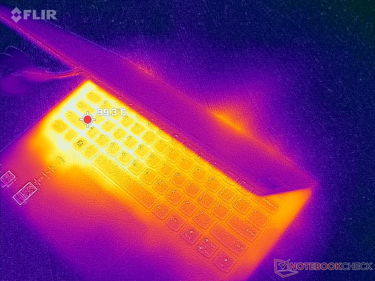 Gorące punkty mogą osiągnąć do 40 C odpowiednio na górnej i dolnej stronie, co jest nieco cieplejsze niż to, co zarejestrowaliśmy na konkurencyjnych modelach Inspiron 14 7435 2-w-1.