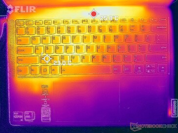 (+) Podpórki pod nadgarstki i touchpad są chłodniejsze niż temperatura skóry i maksymalnie 27.8 °C / 82 F i dlatego są chłodne w dotyku.