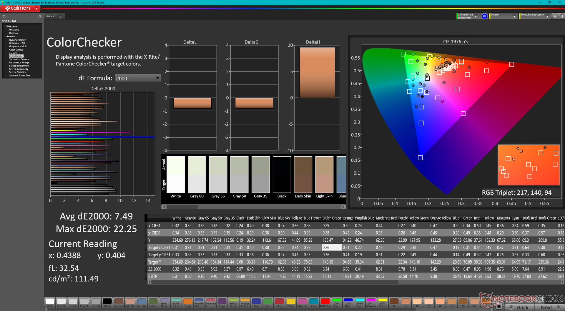 ΔE ColorChecker Calman: 7.49 | ∀{0.5-29.43 Ø4.78}