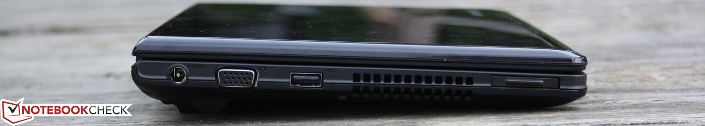 Poza trzema portami USB 2.0 omawiany laptop posiada również analogowe (VGA) oraz cyfrowe (HDMI) wyjście na monitory zewnętrzne. IdeaPad S205 nie posiada portu stacji dokującej.