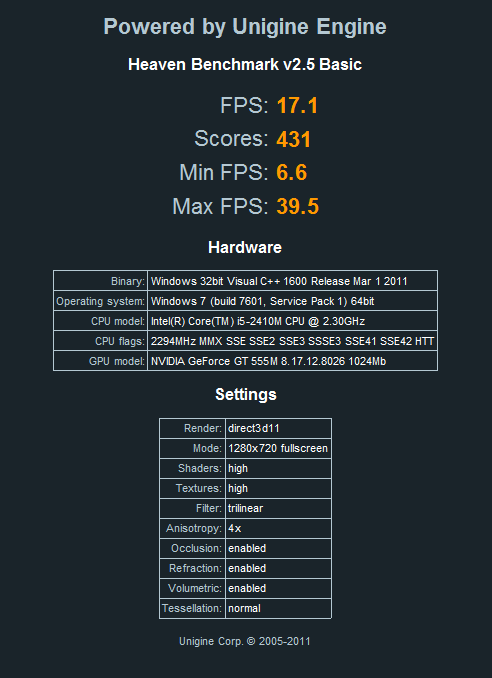 Pretendujące dzięki swoim podzespołom do wyższej klasy średniej Lenovo Y570 w grach radzi sobie całkiem nieźle, zapewniając płynną rozgrywkę w większości testowanych tytułów. Przy porównaniu płynności w grach między GF GT 555M z omawianego laptopa a GF GT 540M i GF GT 550M zauważalna jest niewielka (ale jednak) przewaga tego pierwszego układu. W niektórych tytułach (np. NFS Shift) jest ona znacząca, gdyż pozwala na uzyskanie średniej liczby klatek przekraczającej umowną granicę płynności (czyli ponad 30 kl/s).