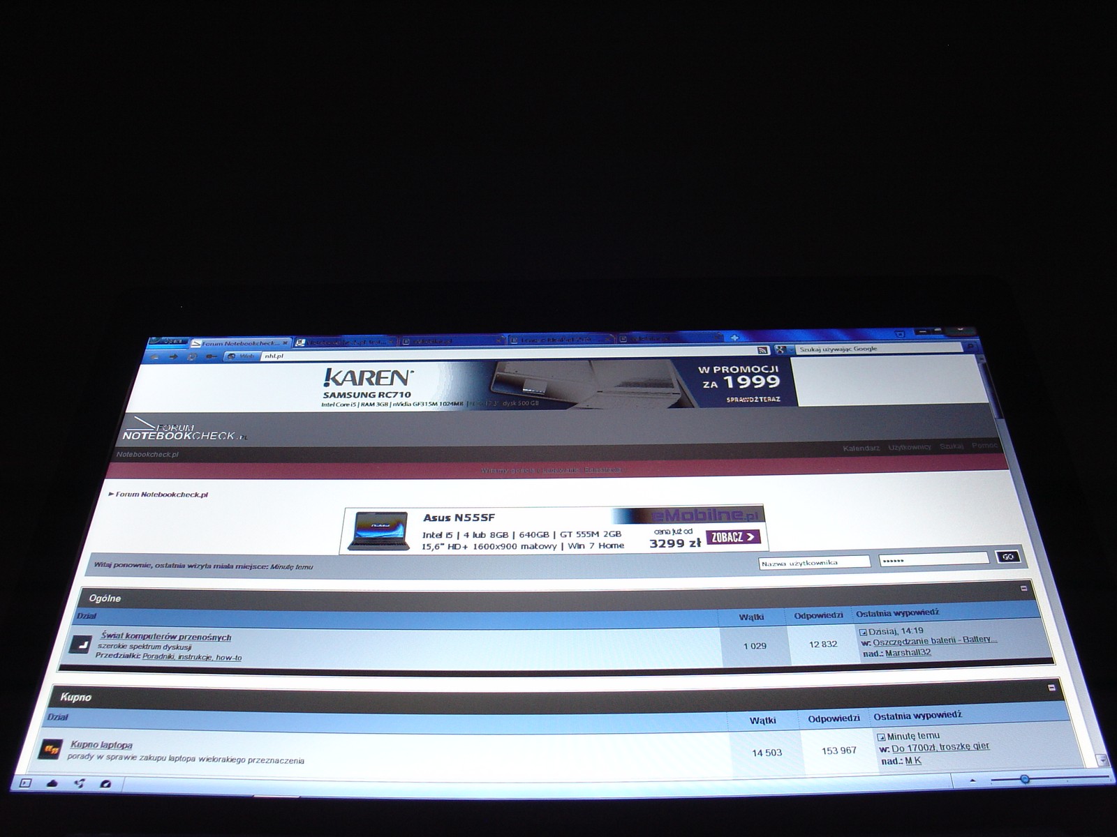 Kąty widzenia nie są zadowalające, jak na multimedialny notebook z - nazwijmy to - wyższej półki średniej, ale w węższym gronie mogą spełnić oczekiwania mniej wymagających widzów.