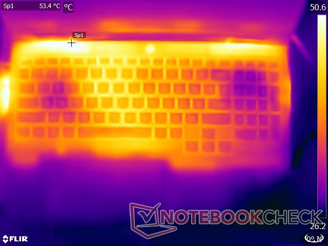 Kolejnym obszarem, w którym LOQ 15 z procesorem Intela rozczarowuje, jest emisja ciepła. Z drugiej strony, poziomy hałasu wentylatorów są do opanowania i możliwe jest odpowiednie granie w 1080p nawet przy niższych profilach mocy.