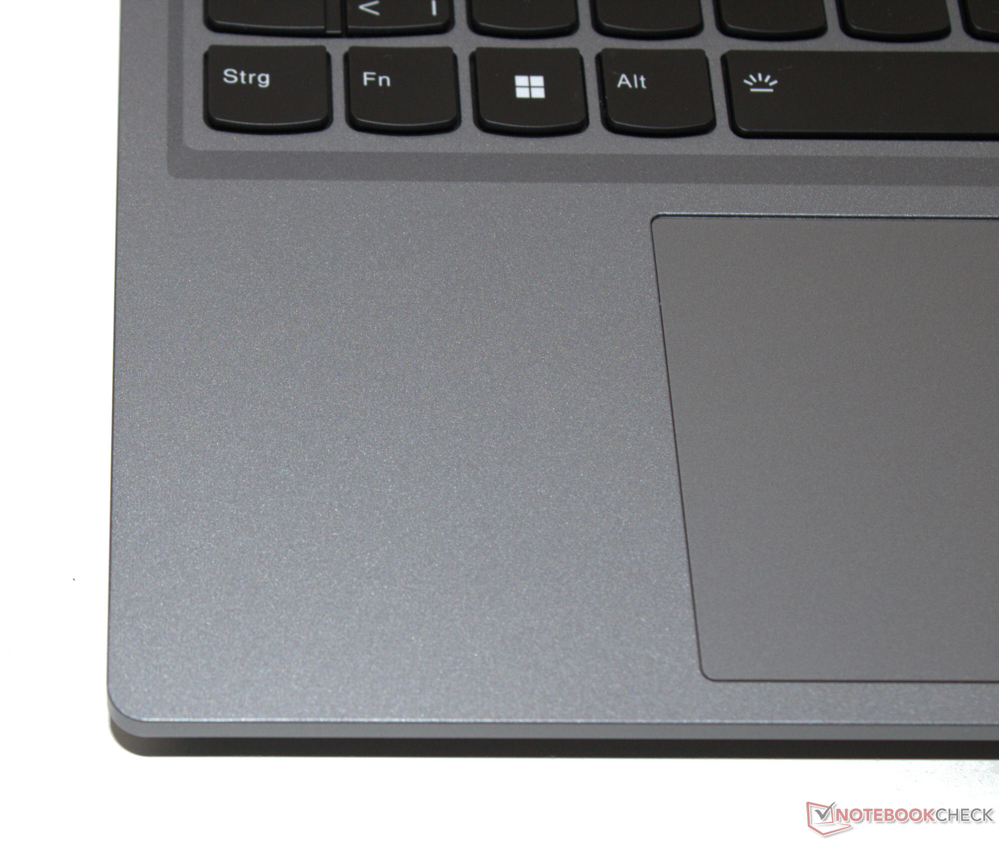 Klawiatura typu chiclet z białym podświetleniem rozciąga się na całą szerokość laptopa - dodatkowo posiada ona klawiaturę numeryczną. Kształt i rozmieszczenie klawiszy odpowiadają znanemu układowi Lenovo. Wklęsłe klawisze zapewniają przyjemny opór i wyraźny punkt nacisku. Klawiatura lekko ugina się podczas pisania, ale nie stanowi to problemu. Pozytyw: Przesunięte, pełnowymiarowe klawisze strzałek są wygodne w użyciu. Wielodotykowy clickpad (ok. 12 x 7,5 cm) z krótkim skokiem i wyraźnym punktem nacisku służy jako zamiennik myszy.
