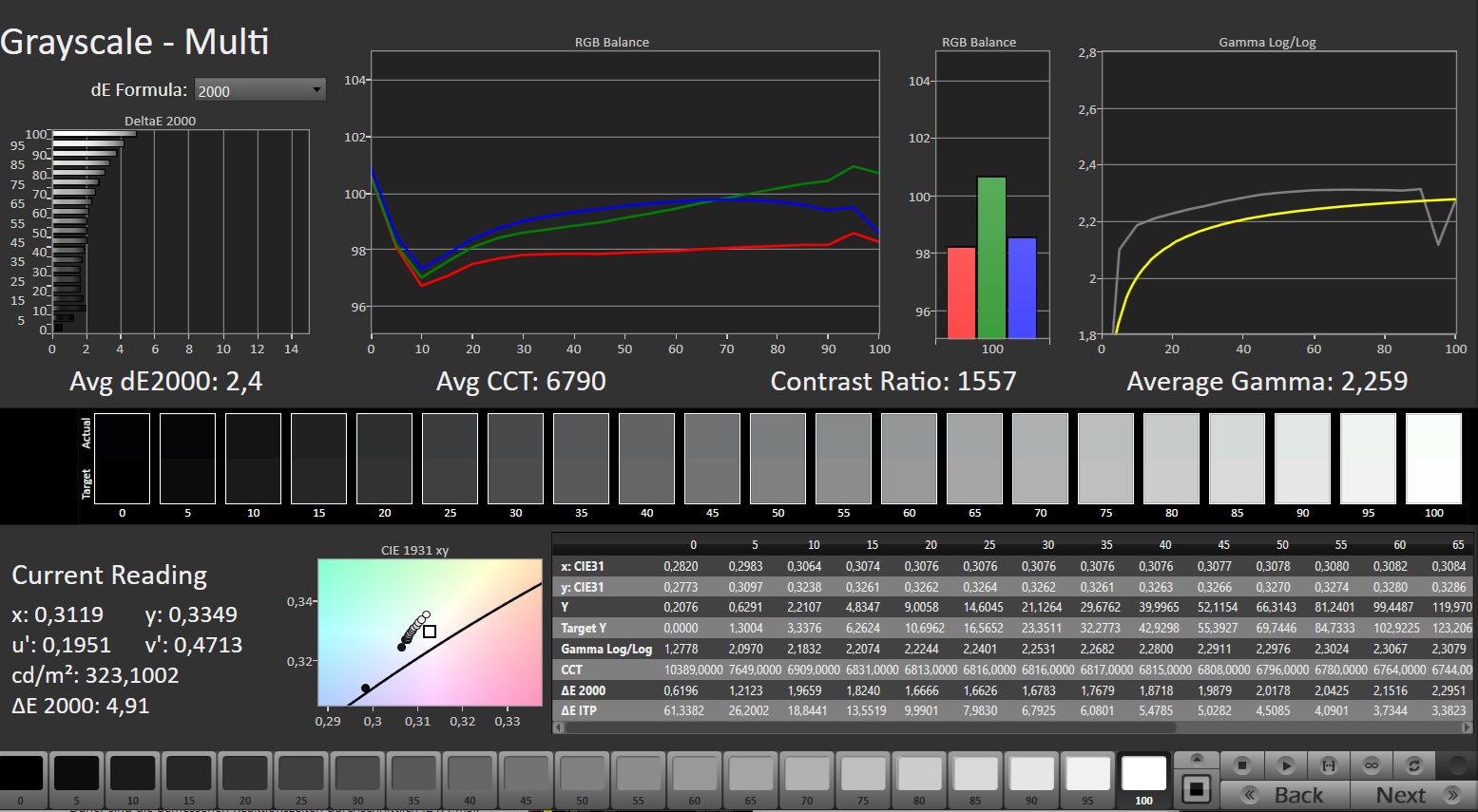 ΔE Greyscale Calman: 2.4 | ∀{0.09-98 Ø5}