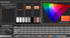 Zaraz po wyjęciu z pudełka wyświetlacz jest dobrze skalibrowany: Przy odchyleniu wynoszącym około 2,25, wartość docelowa (DeltaE < 3) została osiągnięta. Kalibracja ekranu obniża odchylenia do 1,45 i zapewnia bardziej zrównoważone odcienie szarości. Panel jest w stanie odwzorować prawie całą przestrzeń sRGB, ale nie przestrzenie AdobeRGB i DCI P3.