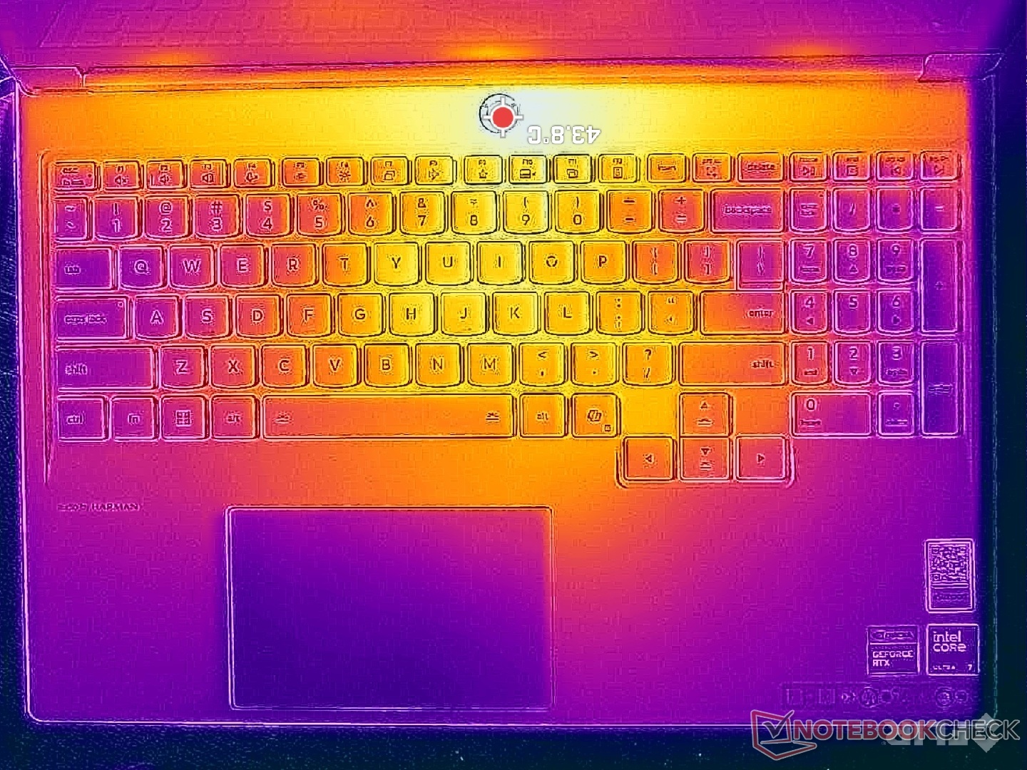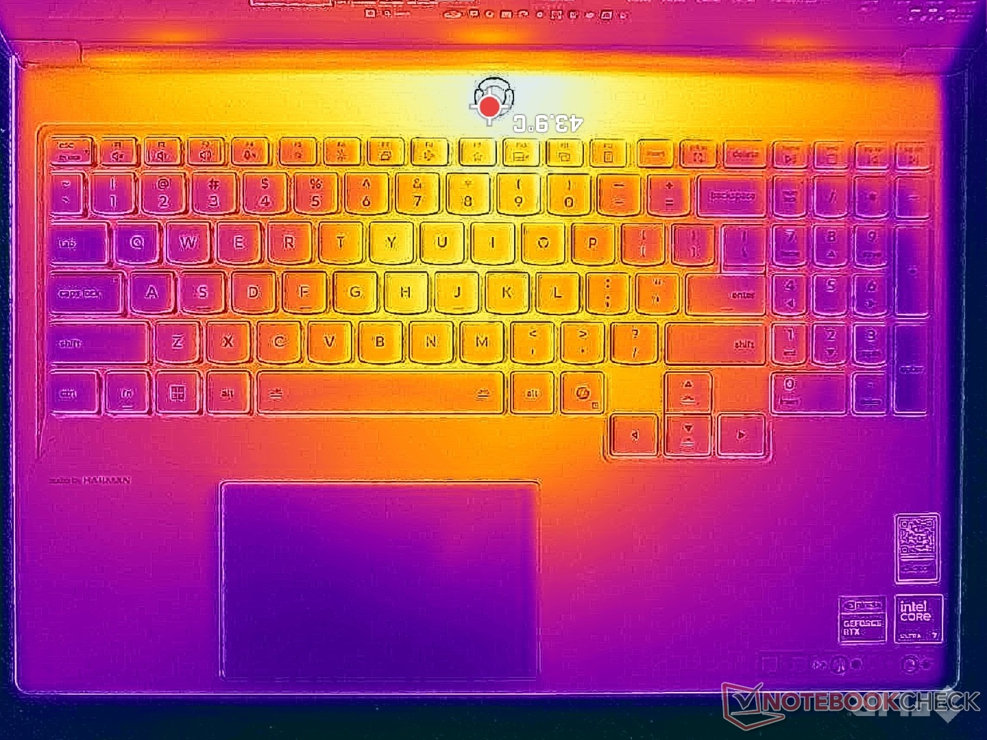 (+) Podpórki pod nadgarstki i touchpad są chłodniejsze niż temperatura skóry i maksymalnie 31.4 °C / 88.5 F i dlatego są chłodne w dotyku.