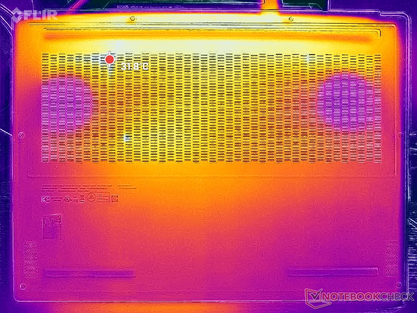 (±) 3: The average temperature for the upper side is 36.3 °C / 97 F, compared to the average of 33.9 °C / 93 F for the class Gaming.