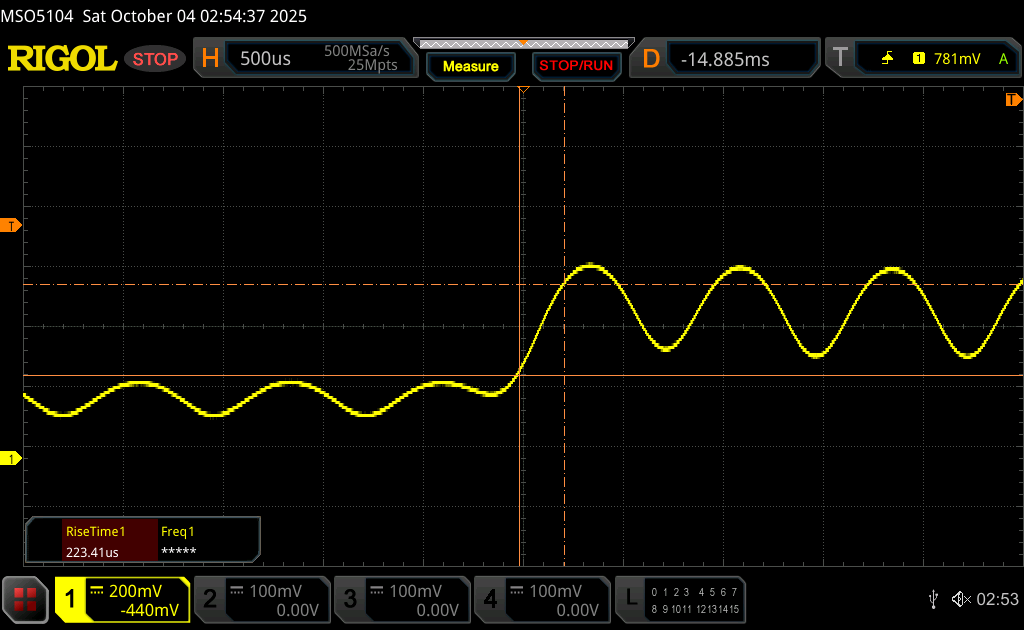 (+) | wzloty są liniowe (2.7% delta do poprzedniej częstotliwości)