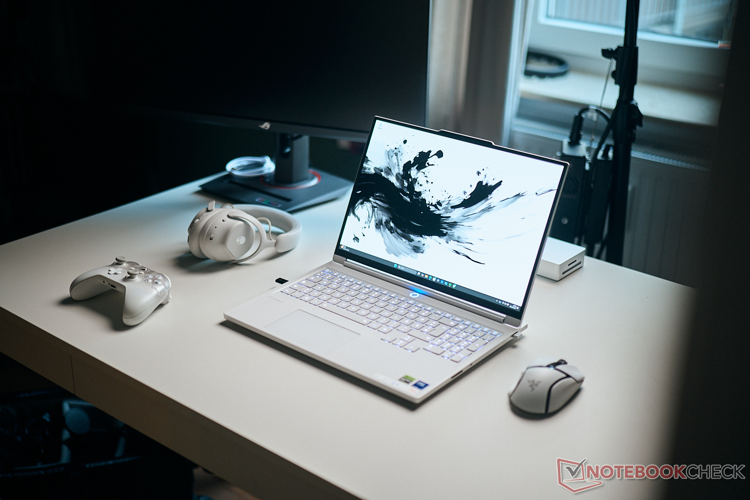 Obudowa wyróżnia się matową, białą kolorystyką, w przeciwieństwie do zwykle ciemniejszych odcieni większości innych laptopów do gier. Pod względem estetycznym biały kolor doskonale ukrywa odciski palców, ale zadrapania i wgniecenia mogą pojawiać się łatwiej. Obudowa składa się z podobnych materiałów ze stopu aluminium i anodyzowanej tekstury zewnętrznej, jak większość innych laptopów Legion.