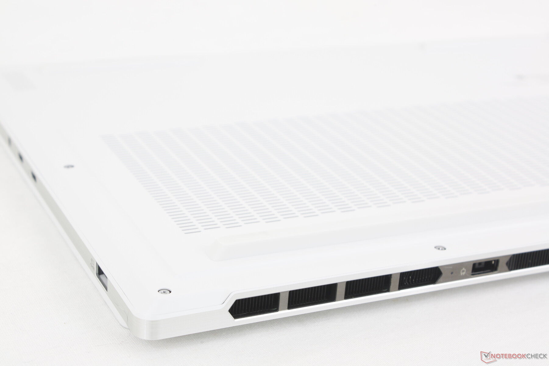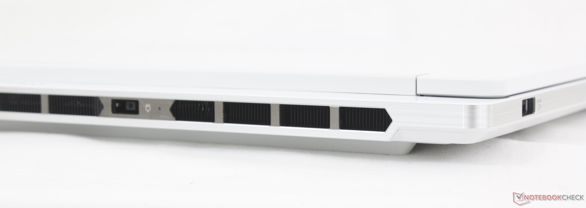 System dziedziczy wszystkie porty znalezione w zeszłorocznym Legion 7 16IRX9 z wyjątkiem trzeciego portu USB-C wzdłuż prawej krawędzi. W porównaniu do konkurencyjnych modeli, takich jak Asus TUF Gaming A16lenovo ma mniej portów USB-A i nie ma portu RJ-45.