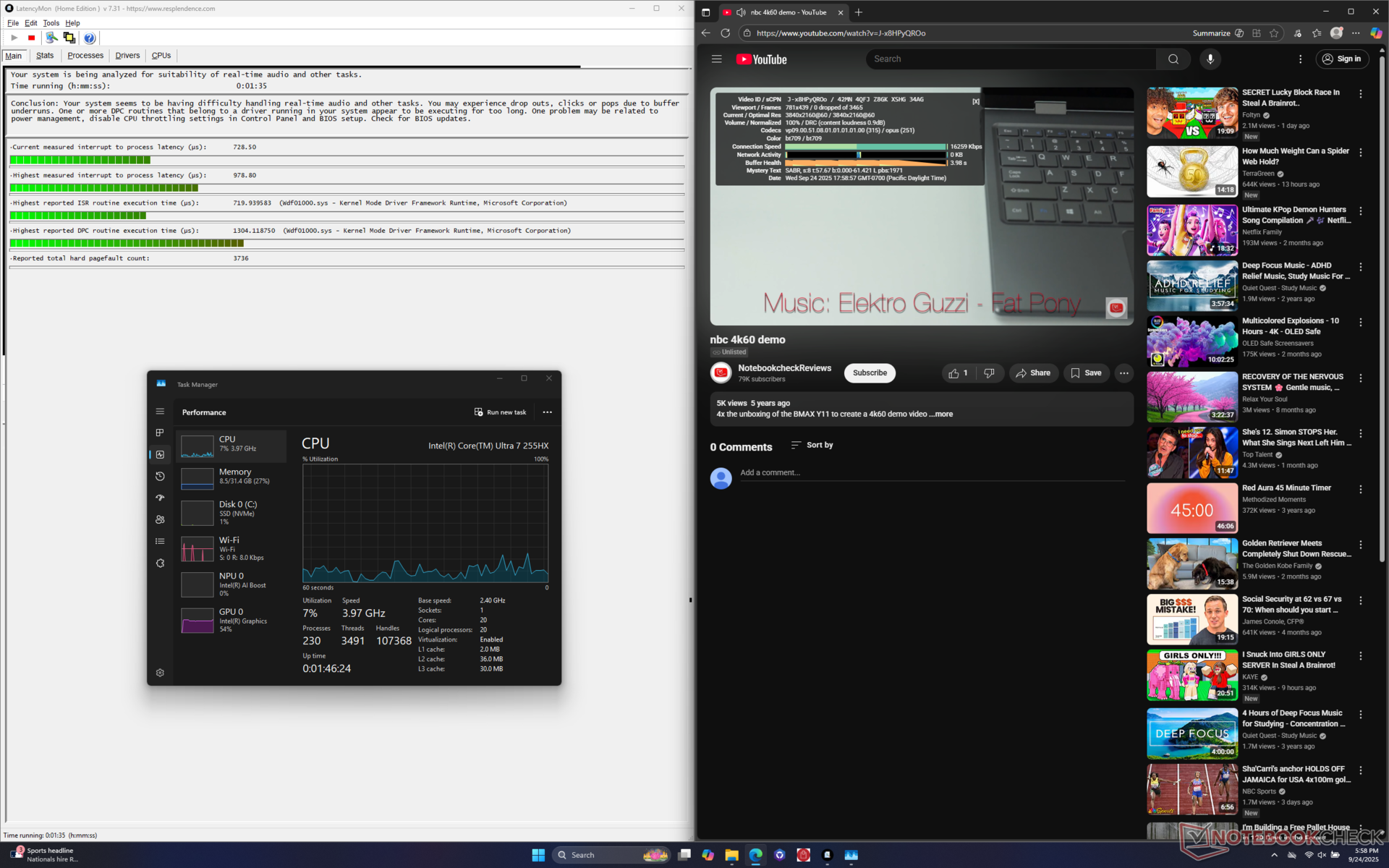 Połączenie procesora z serii HX, wyświetlacza OLED i nieco mniejszej baterii w tej kategorii przyczyniło się do krótszych czasów pracy. Przeglądanie sieci WLAN w trybie zrównoważonym i iGPU trwa nieco ponad 4,5 godziny w porównaniu do ponad 7 godzin w przypadku alternatyw, takich jak Alienware 16 Aurora lub Gigabyte Gaming A16.