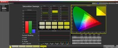 Podobnie jak w przypadku wyświetlaczy konkurentów o podobnej specyfikacji, panel w Legion Pro 5 może odtworzyć prawie całą gamę sRGB i jest tylko ułamek od 100% pokrycia w oparciu o nasze pomiary. Pełna reprodukcja AdobeRGB i Display-P3 wykracza poza możliwości wyświetlacza. Nie stanowi to jednak żadnej wady w laptopie do gier. Możliwe jest nawet bardzo dobre edytowanie zdjęć na urządzeniu, pod warunkiem, że nie oczekuje się od niego spełnienia profesjonalnych standardów.