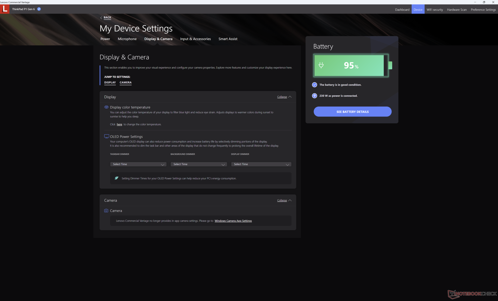 Przed uruchomieniem poniższych testów porównawczych ustawiliśmy system Windows na tryb wydajności. Lenovo Vantage nie zawiera żadnych specjalistycznych profili zasilania, aby zachować prostotę.