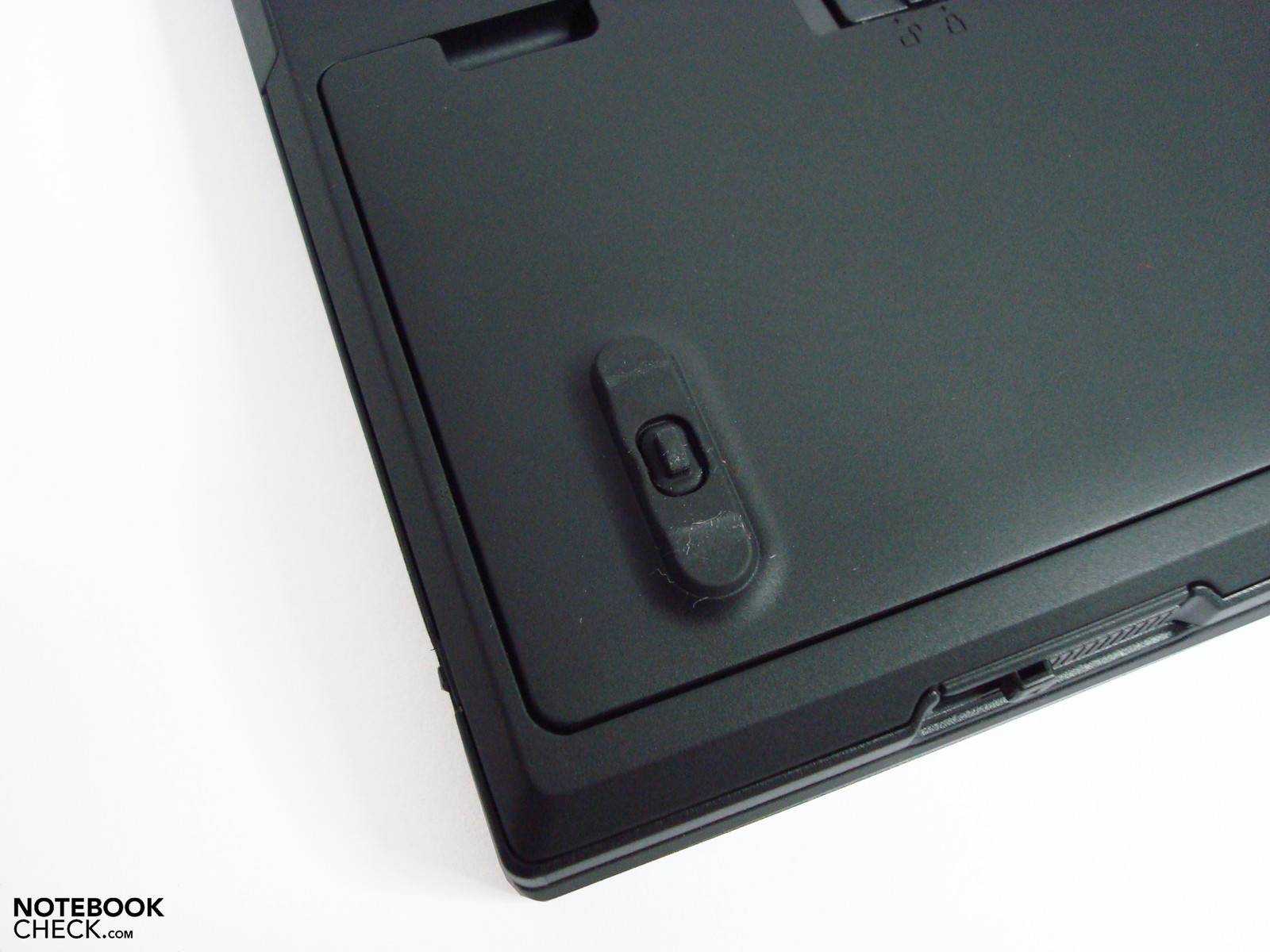 Po wyjęciu akumulatora laptop traci jedną ze swoich podpór i przechyla się na prawą przednią stronę. Pisanie na klawiaturze jest wtedy możliwe tylko dla wytrwałych oraz przez krótki czas. Usadowienie baterii z przodu ma tę zaletę, że możliwe jest odchylanie ekranu jedną ręką. Stanowi ona bowiem potrzebną do tego przeciwwagę, a że zawiasy chodzą lekko, przy otwieraniu ekranu jednostka zasadnicza nie podnosi się.