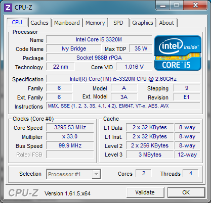 Testowany ThinkPad T430s był wyposażony w procesor Core i5-3320M o bazowym taktowaniu 2,6 GHz. Jego dane techniczne można znaleźć na poświęconej mu stronie.