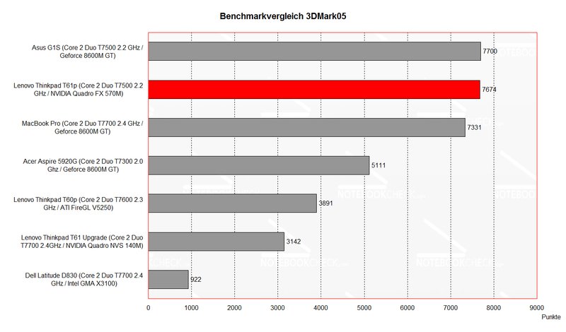 Układ ten wypada znakomicie w testach syntetycznych, ale też radzi sobie niezgorzej z najnowszymi grami, które są dobrym praktycznym probierzem dla możliwości danej karty. Biorąc pod uwagę zegary Quadro FX 570M oraz wyniki w 3DMarku06 (podobne do tych osiągniętych przez Asusa G1S oraz nowego MacBooka Pro), stwierdzimy, że chodzi tu o procesor graficzny identyczny z GF 8600M GT.